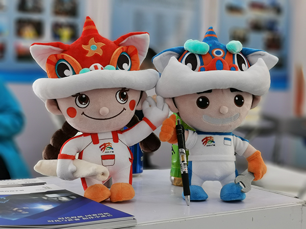 | 大賽吉祥物“揚(yáng)揚(yáng)”和“悅悅” | 吉祥物迎接四方來賓 |